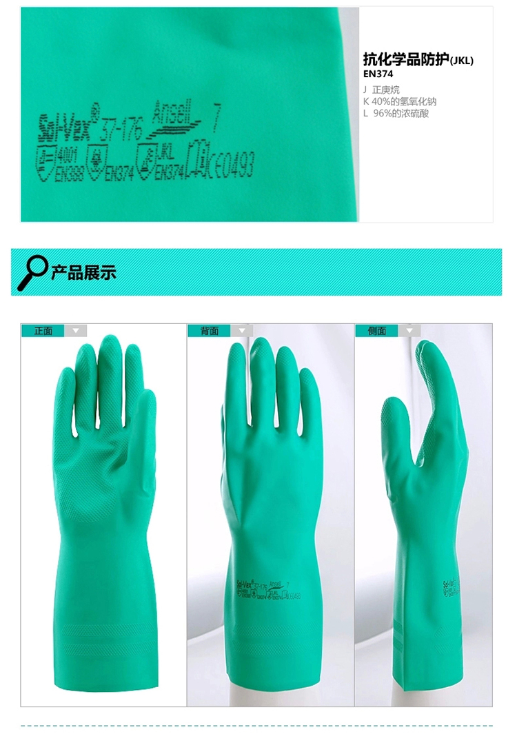 现在位置:首页>实验室安全防护>手部防护>化学品防护手套> 安思尔 Ansell 37-176丁腈橡胶防化耐油耐酸碱溶剂工业劳保防护手手套