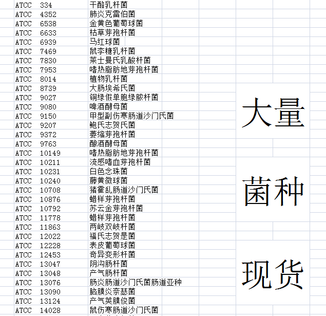 绿谷专业提供微生物菌种订购服务,是ATCC菌种菌株的国内专业服务商,为客户提供质优价廉的标准菌种,是我们始终如一的追求。我公司提供的原装进口菌种都质量并附有证书,方便客户溯源和认可工作。美国标准菌种库(ATCC)和九大微生物菌种保藏中心的菌种资源、细胞系资源为代表的国内外微生物菌种资源,信息庞大,数据翔实,方便实用。常规检测标准菌种我们常年备有现货,全部原装进口,附带证书!
