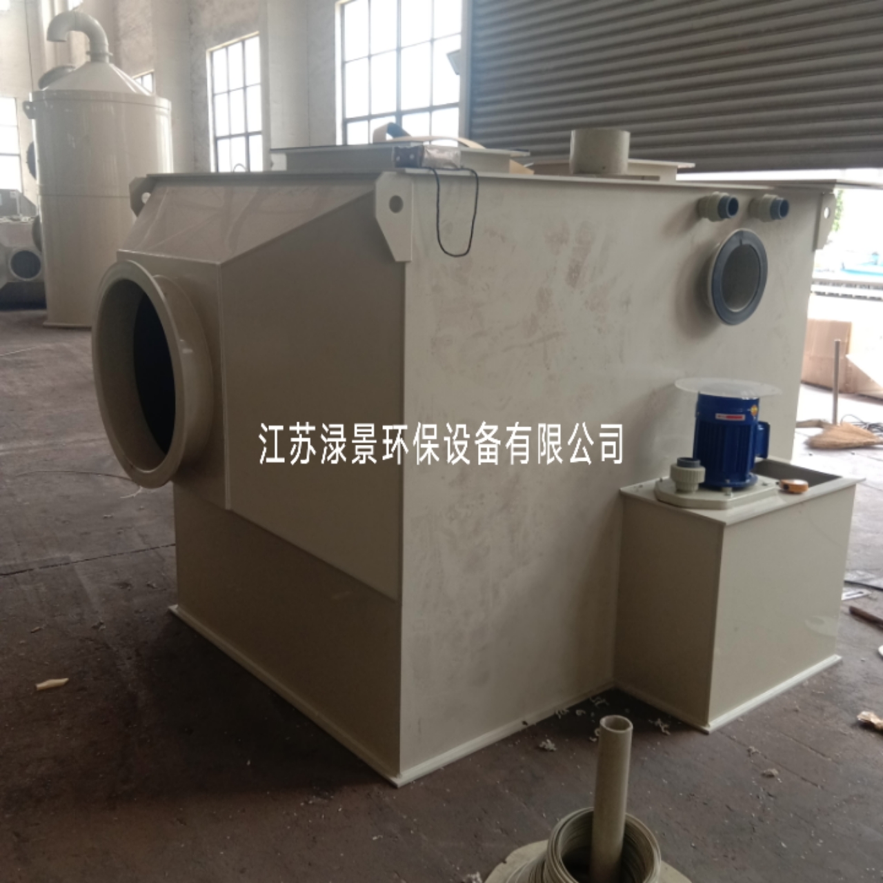 进气段空间,经过 级喷淋段,气相中酸性物质与液相中碱性物质发生化学反应,然后均匀地通过 级填料吸收段,反应生成物质(多数为可溶性盐类)随吸收液流入下部储液槽,在喷淋段中吸收液从均布的喷咀高速喷出,形成无数细小雾滴与气体充分混合、接触、继续发生反应。未完成吸收的酸性气体继续经过下一级喷淋段、填料段进行与 级类似的吸收过程。第二级与 级喷嘴密度不同,喷液压力不同,吸收酸性气体浓度范围有所不同。在喷淋段及填料段两相接触的过程也是传热与传质的过程。通过控制空塔流速与滞储时间保证这一过程的充分与稳定。塔体的出风口前段是除雾段,气体中所夹带的吸收液雾滴在这里被清除下来,经过处理后的洁净空气从净化塔出风口排气管排入大气,达到达到《大气污染物综合排放标准》(GB16297-1996)的排放标准,且能达到 *新的《环境空气质量标准》(GB3095-2012)的二级排放要求。