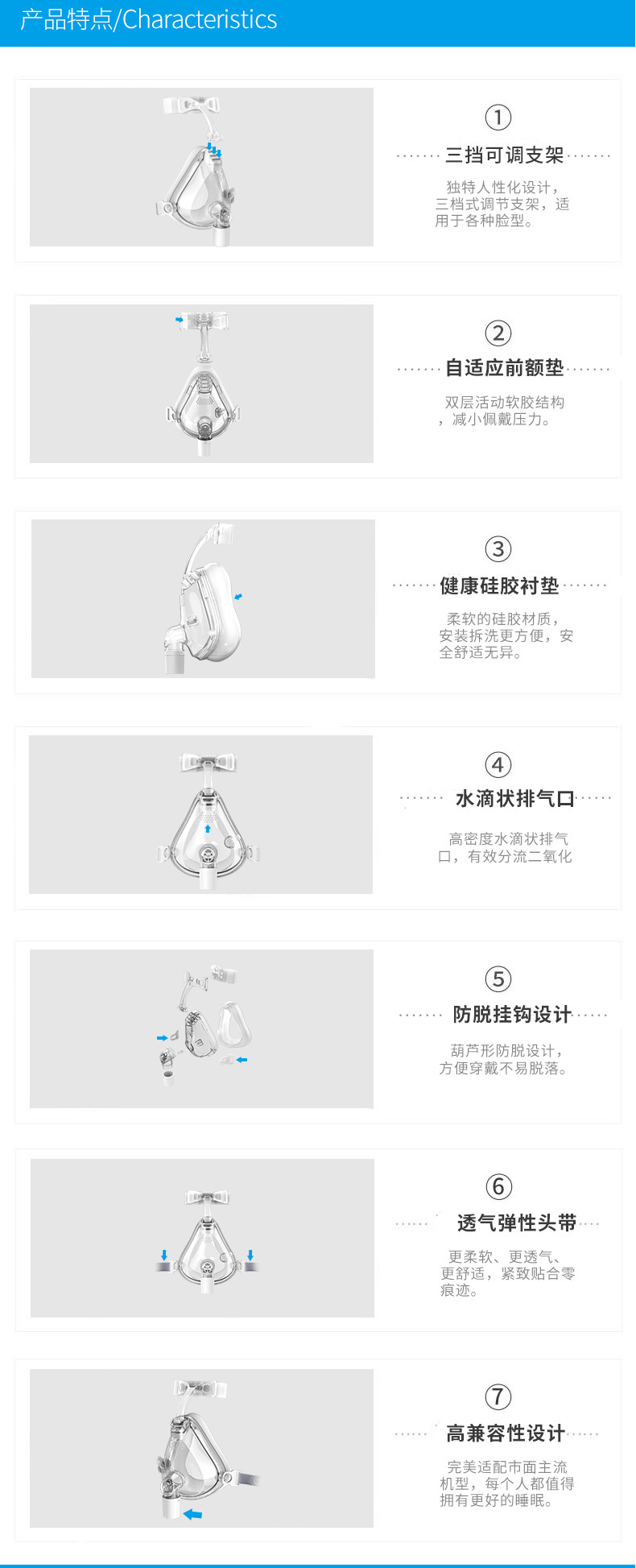 独特人性化设计,三档式调节支架,适用于各种脸型。