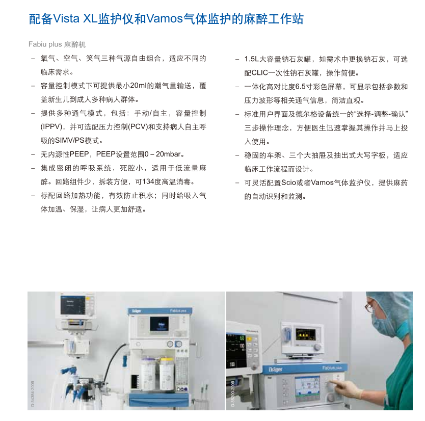 与民用Dr?ger 麻醉机采用相同的技术,具备同样的性能和用户界面(包括通气模式在内)。
