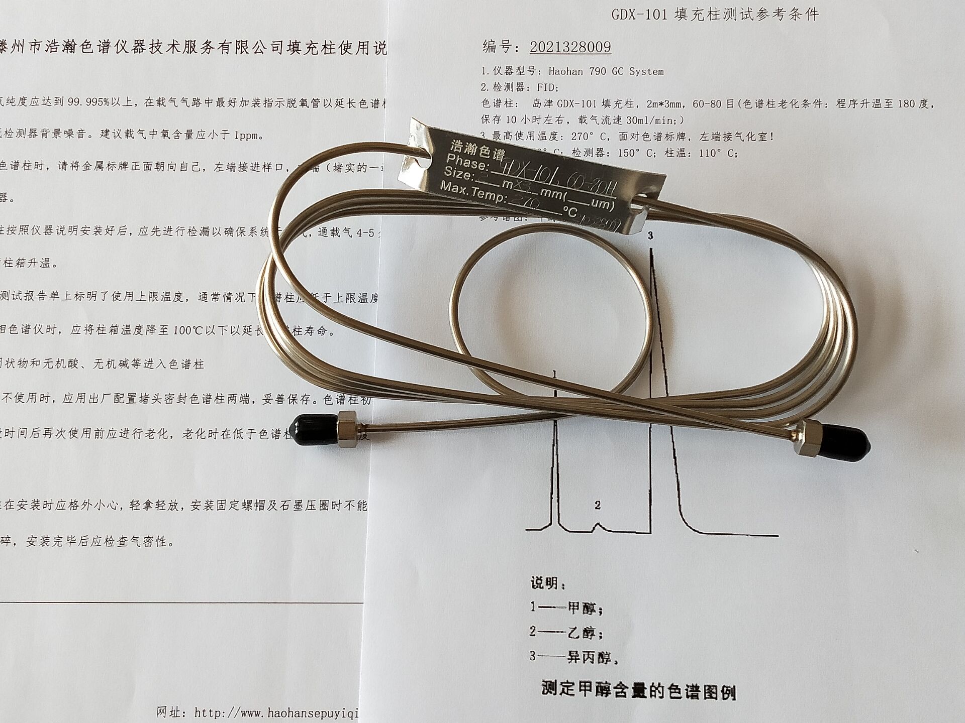感谢您购买浩瀚生产的色谱柱.