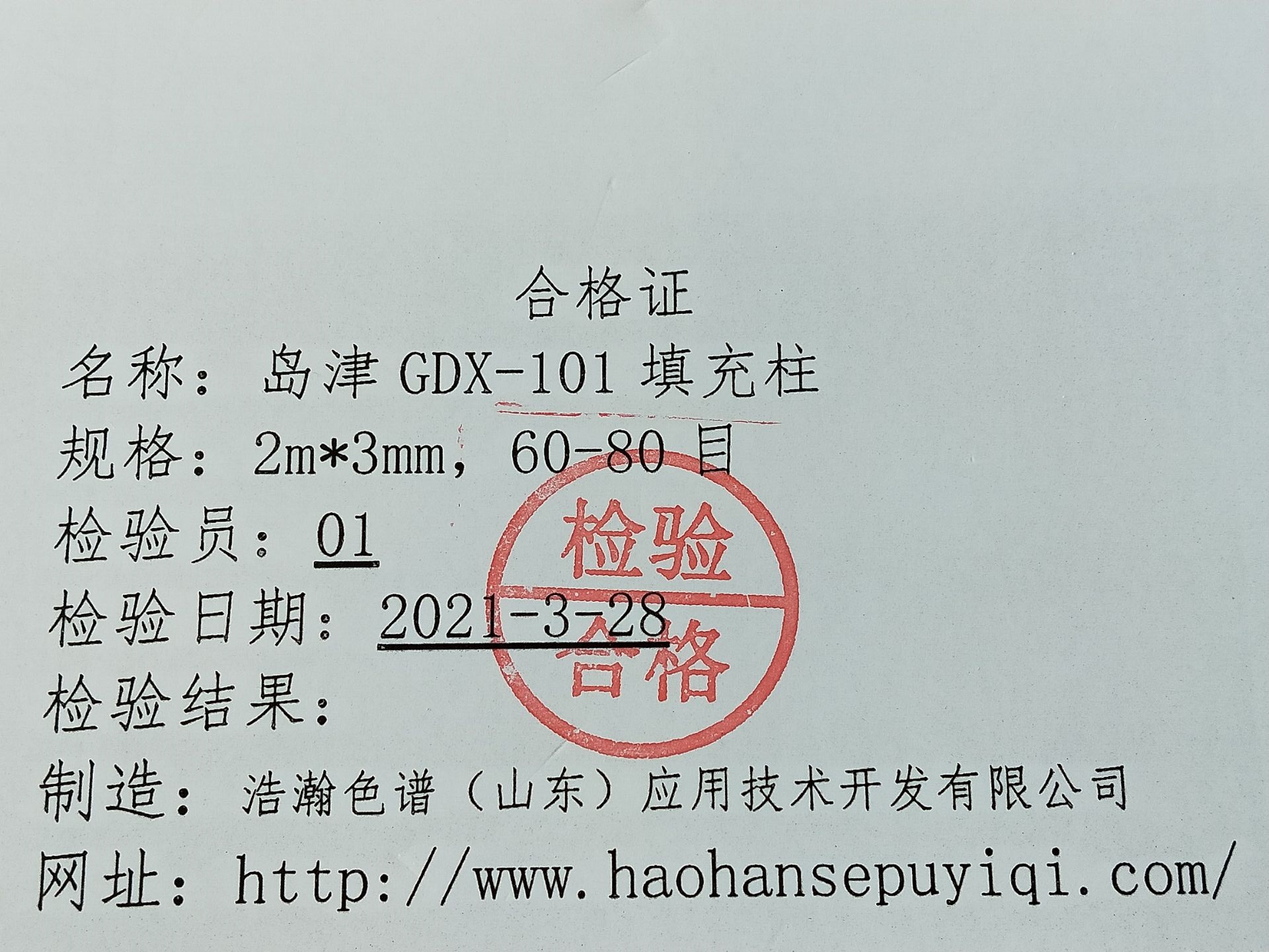 每一根色谱柱经严格测试