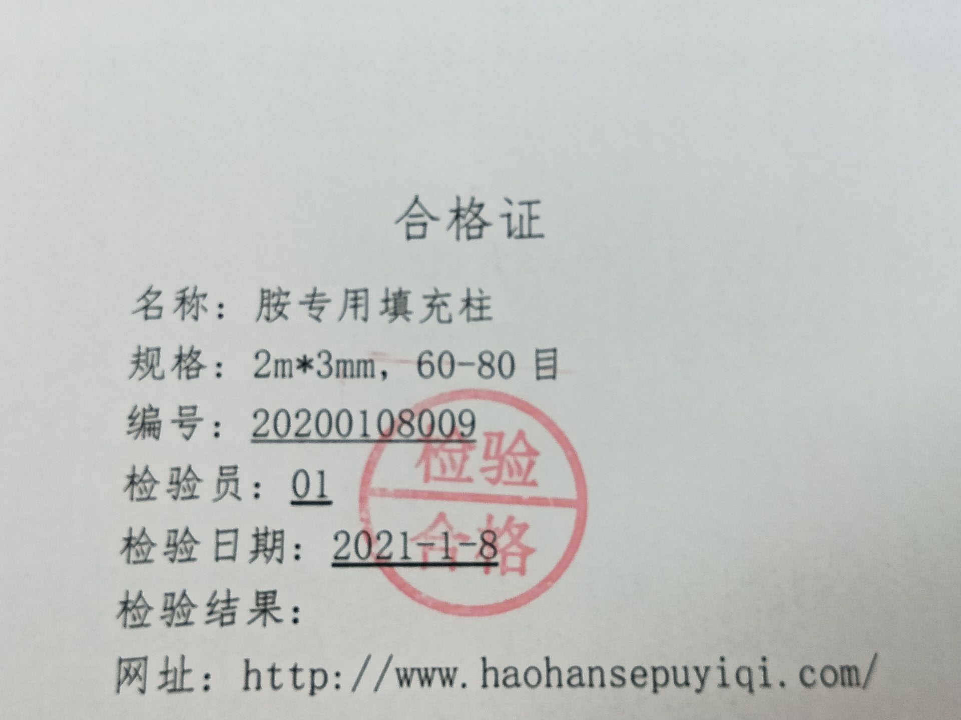 每一根色谱柱经严格测试