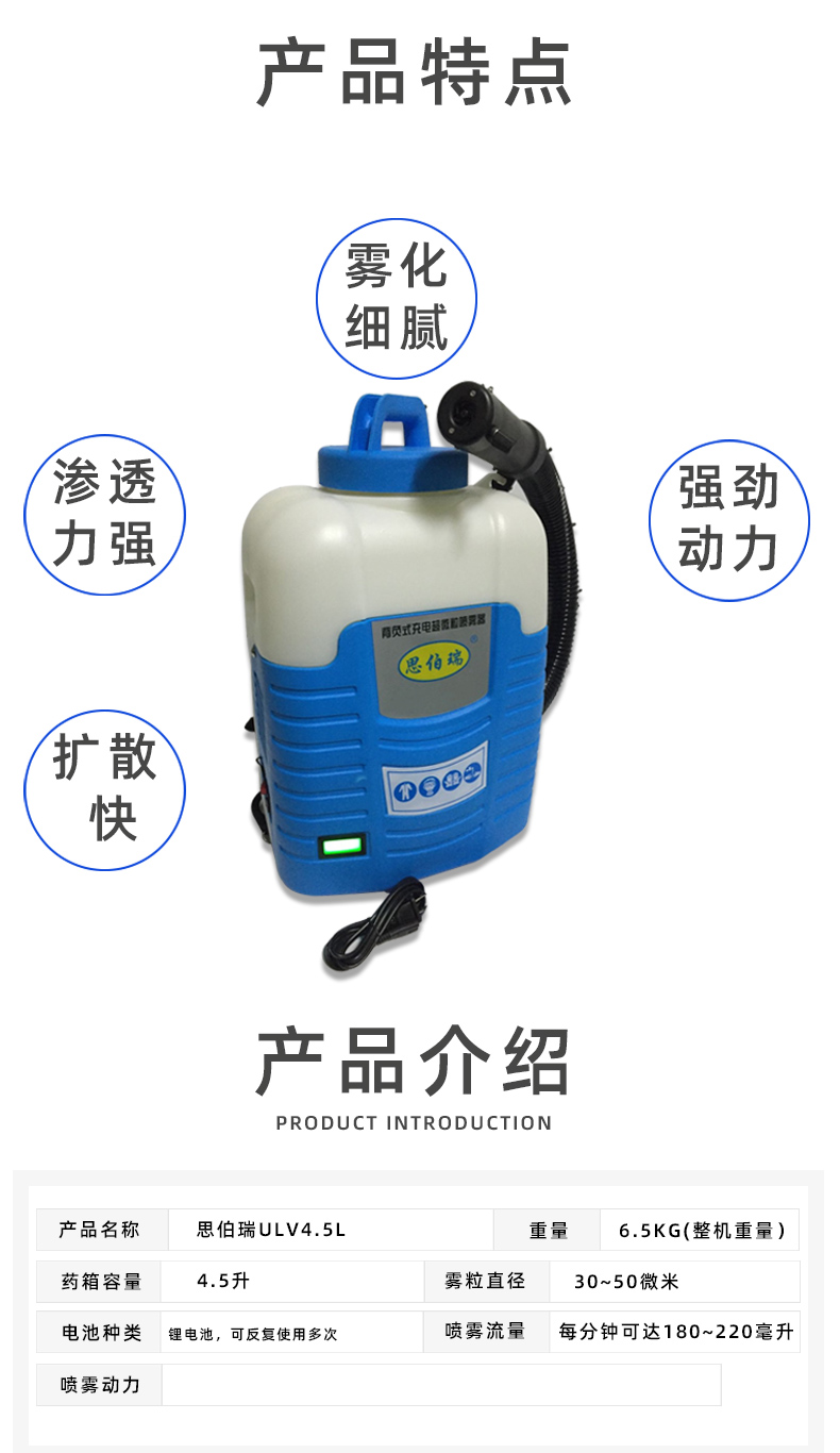 思伯瑞ULV4.5背负式微粒喷雾器低容量锂电池便携式电动喷雾机