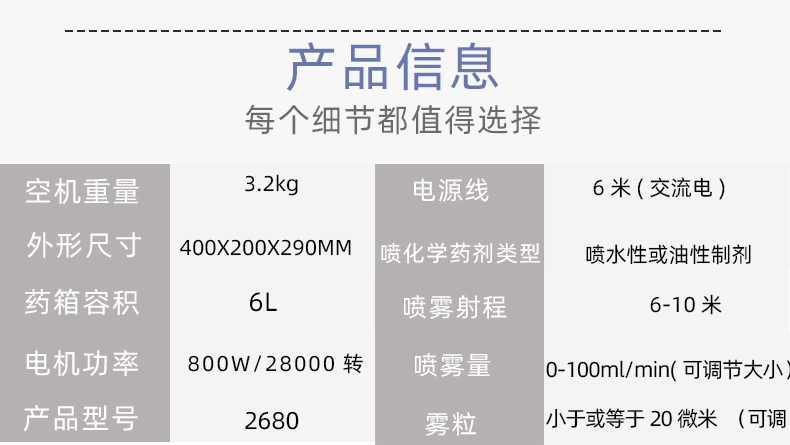 药箱容积 6L 喷雾射程 6-10米