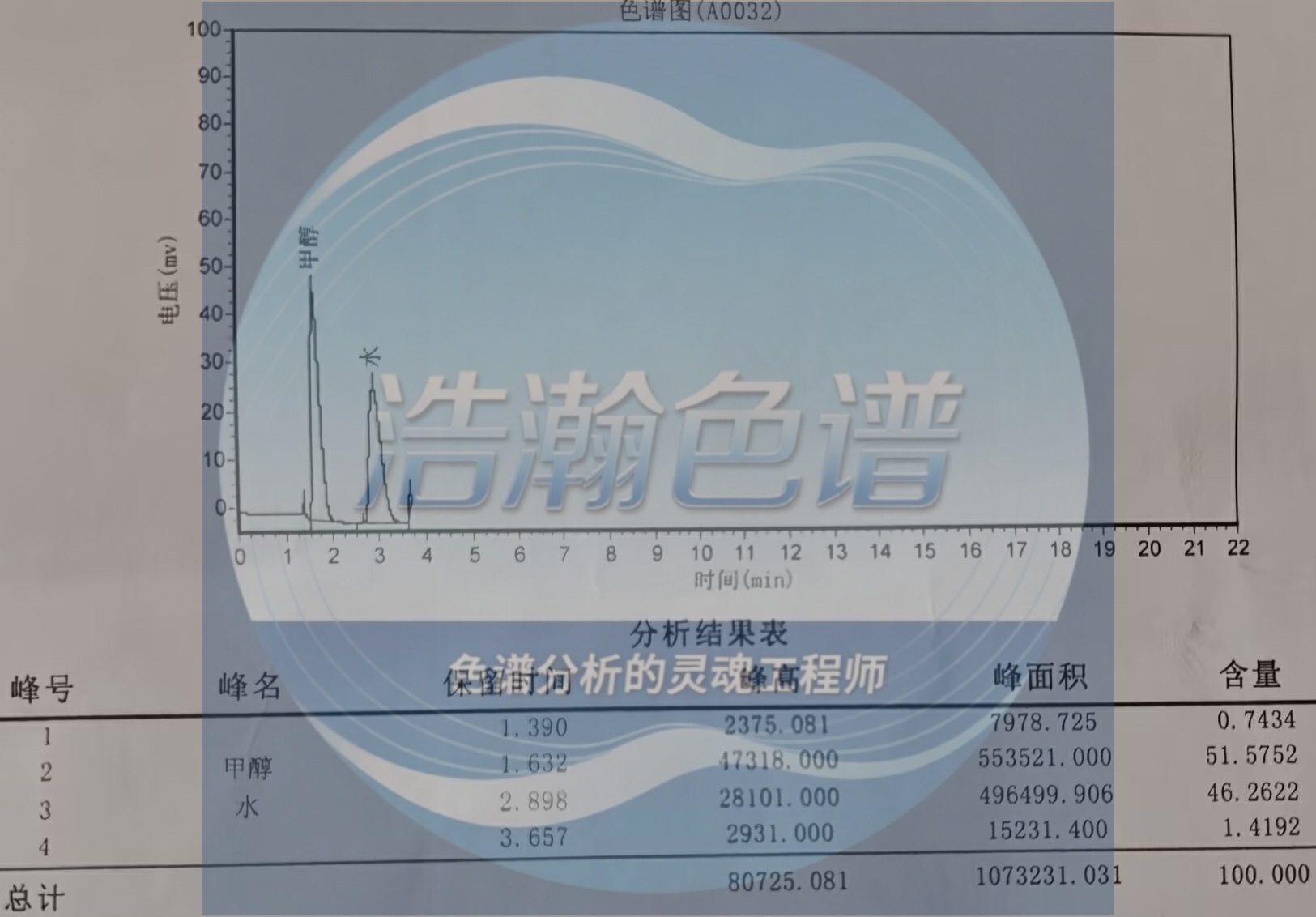 GDX-101填充柱应用安捷伦岛津测定微量水分 测试谱图:
